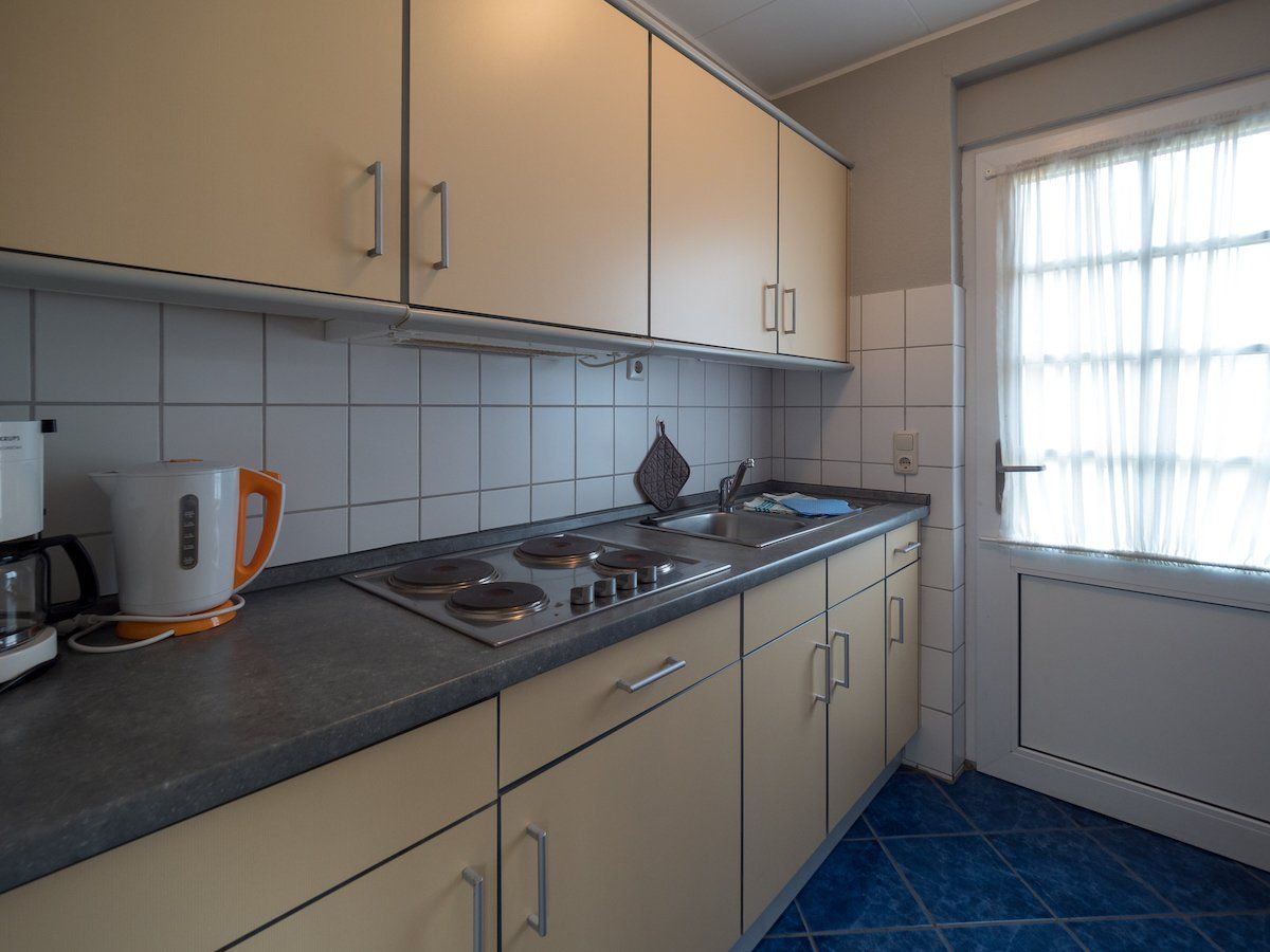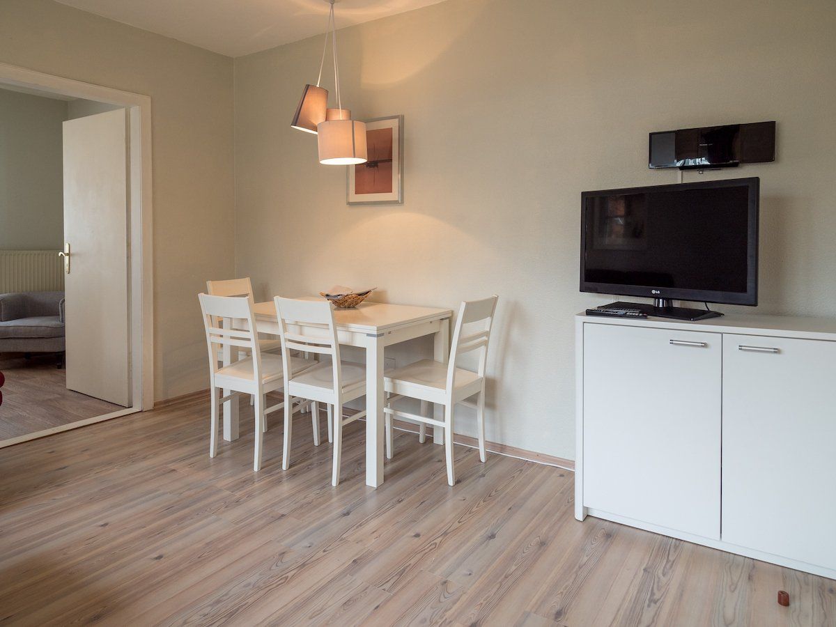 262523Unser helles und freundliches 2-Raum Nichtraucher-Appartement "JANSSAND" für max. 2 Personen besitzt einen Wohnraum, Küchenzeile, einen Schlafraum mit zwei getrennt stehenden Betten (die zu einem Doppelbett zusammen geschoben werden können.), Bad mit Dusche und WC, Föhn, Kabel-TV.